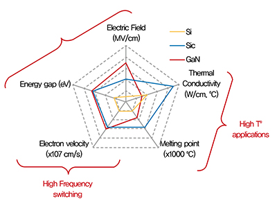 태양광 인버터에 사용되는 인덕터와 커패시터 같은 수동소자의 용량은 스위칭주파수 크기에 반비례하는 특성을 가지고 있으며, 태양광 인버터에 있어 스위칭주파수의 결정은 전력용 반도체소자의 실리콘 웨이퍼 물성에 기초하고 있다. 그러나 SiC나 GaN 소재를 이용한 전력용반도체 소자가 상용화 됨으로 인해 기존 IGBT의 일반적인 스위칭 속도에서 2~3배 높은 스위칭 주파수의 구현이 가능하게 되었고, 이를 통해 50~60%의 수동소자 용량의 감소가 가능하게 되었다. 태양광 인버터에 있어 많은 부피를 차지하고 있었던 인덕터와 커패시터의 용량감소에 따라 태양광 인버터 보다 작은 크기를 가질 수 있게 되었다.